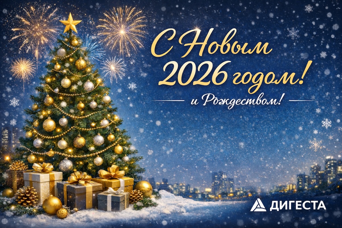 Коллектив компании ДИГЕСТА искренне поздравляет вас с наступающим Новым 2026 годом и желает, чтобы грядущий год был наполнен успехом, стабильностью, интересными достижениями и новыми возможностями!